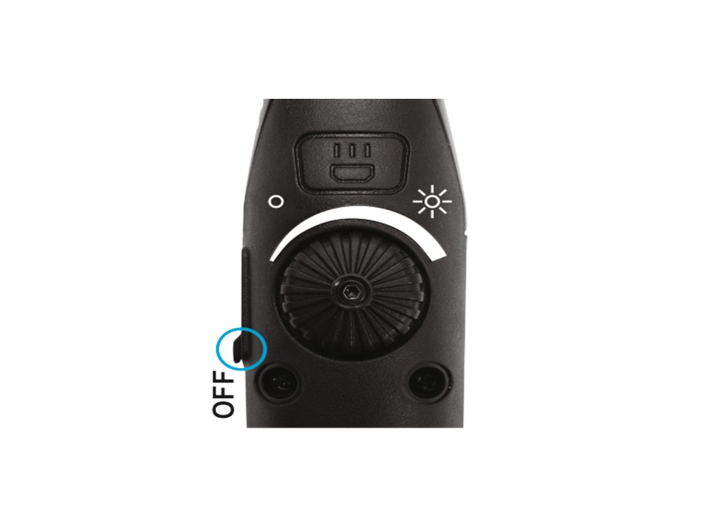 - plynulé nastavení světelného výkonu v rozsahu 60–600 lm pomocí knoflíku