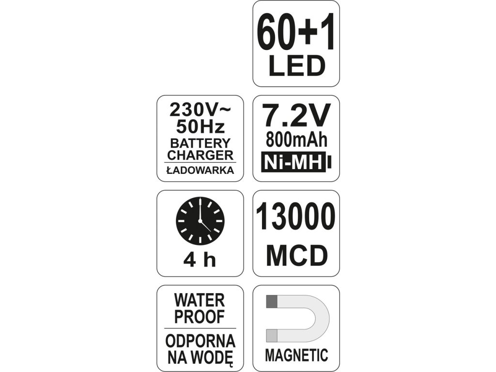 Univerzální montážní lampa vybavená 60 + 1 LED diodami o světelném toku 13000 MCD.