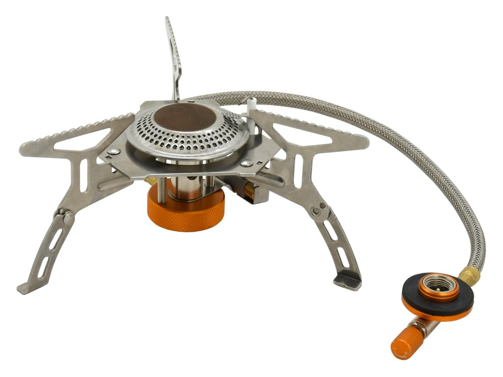 Outdoorový vařič na propan-butan, pro ohřívání a přípravu pokrmů na cestách, v kempu apod.