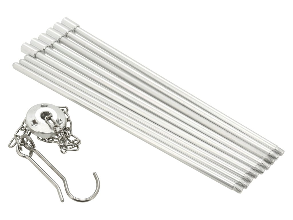 Zhotovený je třemi skládacími nohami z odolného hliníku a hákem zavěšeným na řetězu s celkovou výškou 86 cm po sestavení. Ve složeném stavu má zařízení hmotnost 460g a rozměry 34 x 7 x 3,5 cm, nezabírá tedy mnoho místa a je tak možné, mít ho s sebou kdekoliv na čundru.