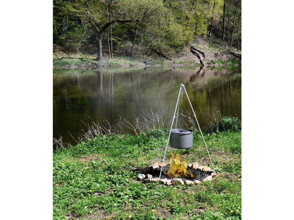 Praktický skládací tripod je výtečným doplňkem pro plynový vařič, ale i ohniště.