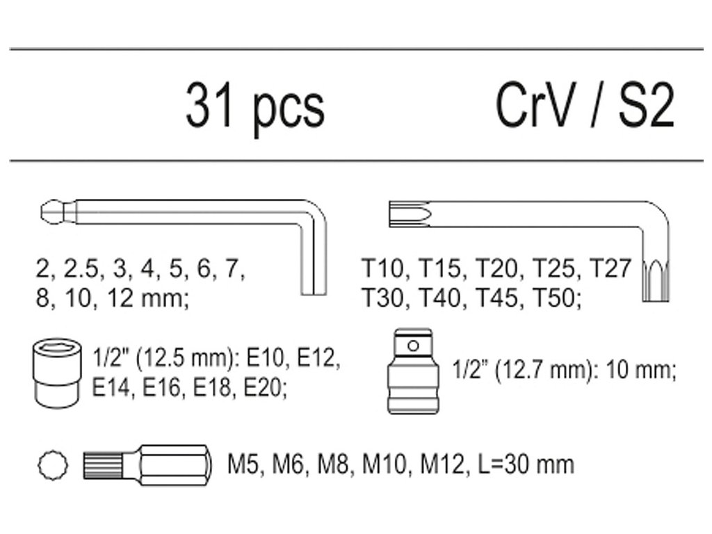 Vložka do zásuvky - sada imbus, torx, bity 31ks