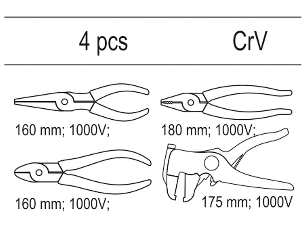 Vložka do zásuvky - sada kleští elektrikářských 1000V, 4ks