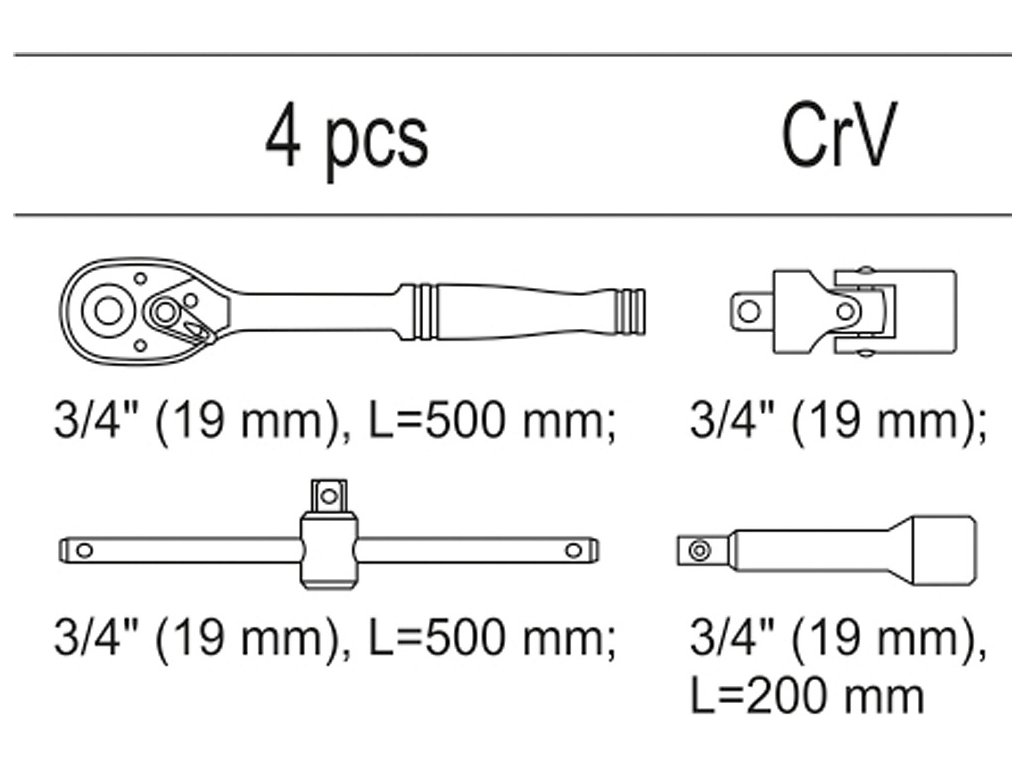 Vložka do zásuvky - sada ráčen a nástavců, 3/4", 4ks