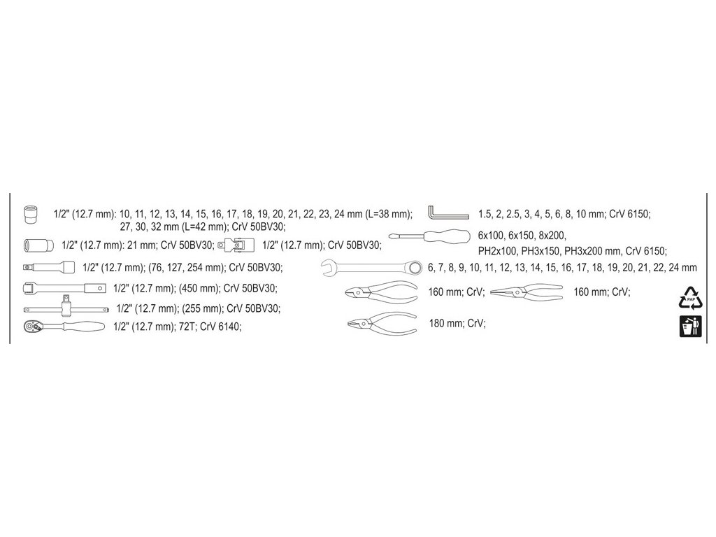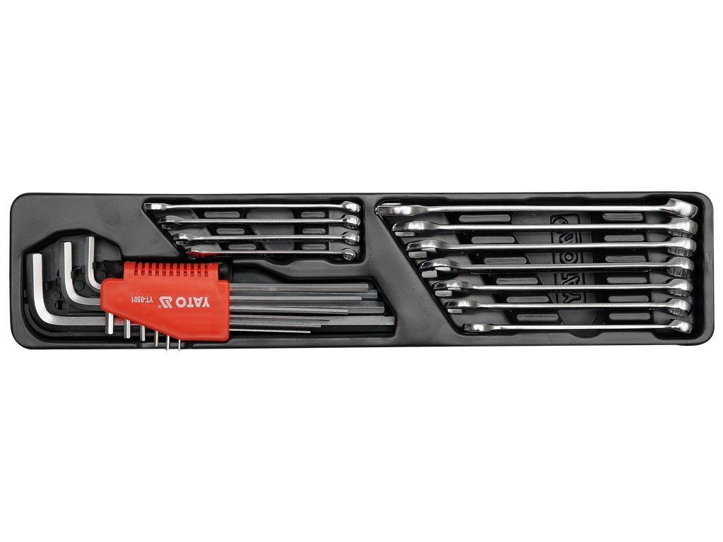 Profesionální sada základního nářadí YATO uložená v odolném kovovém rozkládacím kufru. Ideální pro údržbáře, řidiče nákladních vozů, servisní techniky i jako pohotovostní výbava do nákladních automobilů a mechanizačních zařízení.