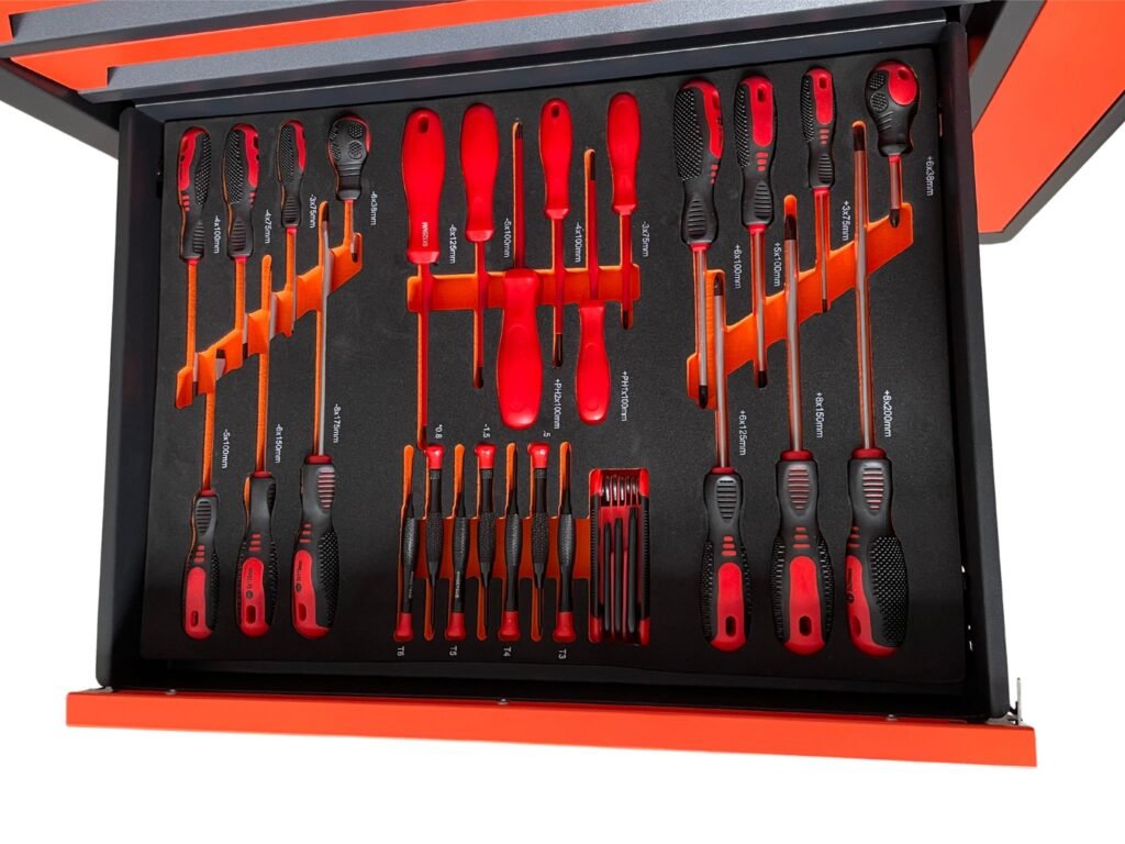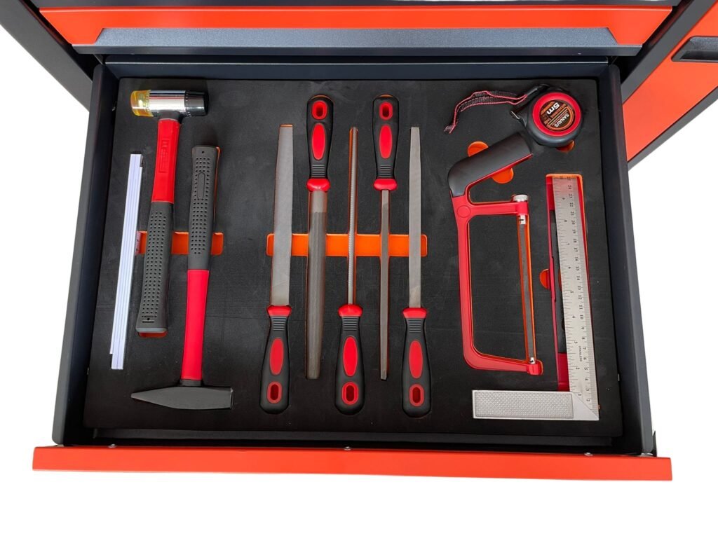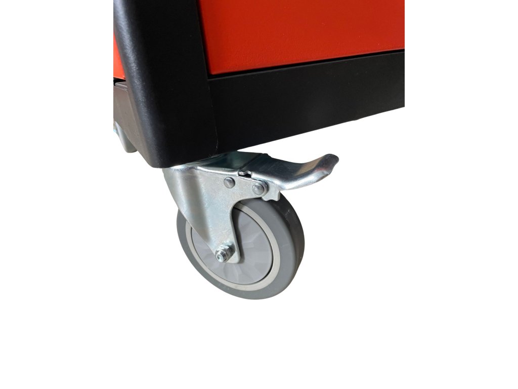 Profesionální dílenský vozík se 7 zásuvkami je ideálním řešením pro každou dílnu a autoservis. Robustní konstrukce s možností montáže svěráku na ocelovou pracovní desku zaručuje odolnost a funkčnost při každodenním používání. Díky centrálnímu zámku a praktickým detailům splňuje i nejnáročnější požadavky na bezpečnost a komfort.