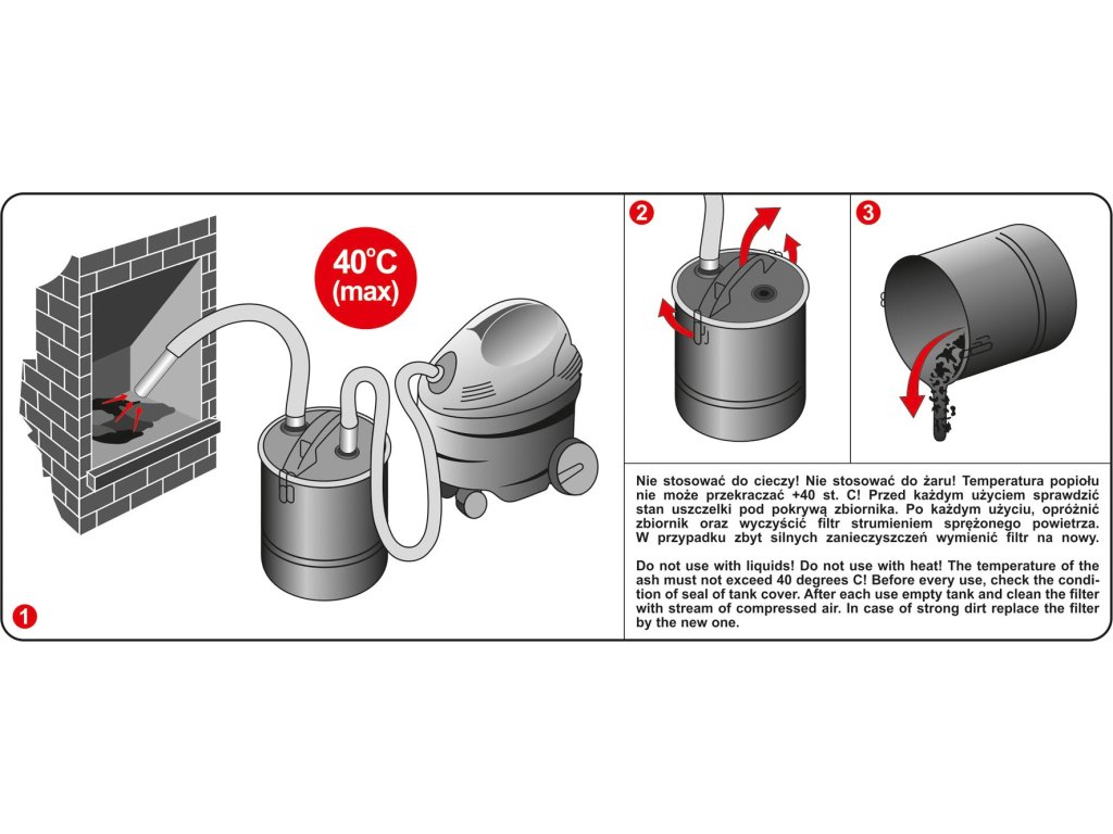 Velmi kvalitní filtrační zařízení, odlučovač popela od firmy Vorel. Po připojení k vysavači působí jako filtr, který zastavuje nečistoty zbývající v peci. Ideální pro čištění krbu. Je vybaven PET filtrem namontovaným v plastovém koši. Kovová nádrž s objemem 18 l se dá velmi rychle vyčistit díky použití 2 svorek.