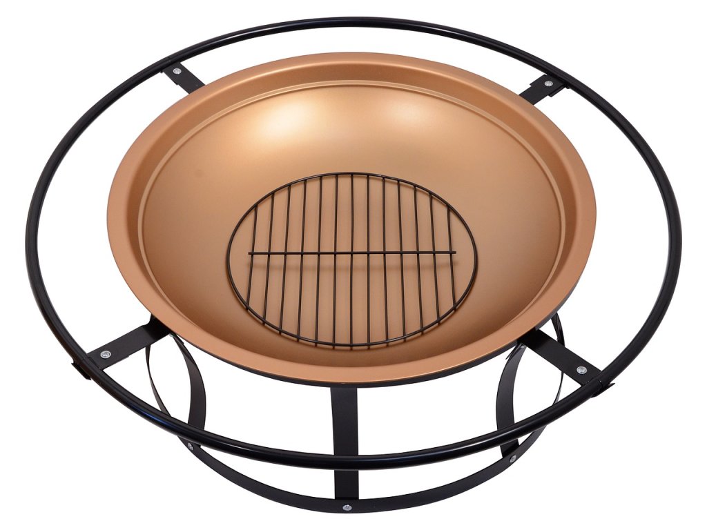 Konstrukce ohniště je vyrobena z kvalitní oceli s vysokoteplotním černým a mosazným nátěrem. Rošt je z ocelové mřížky se smaltovanou povrchovou úpravou.