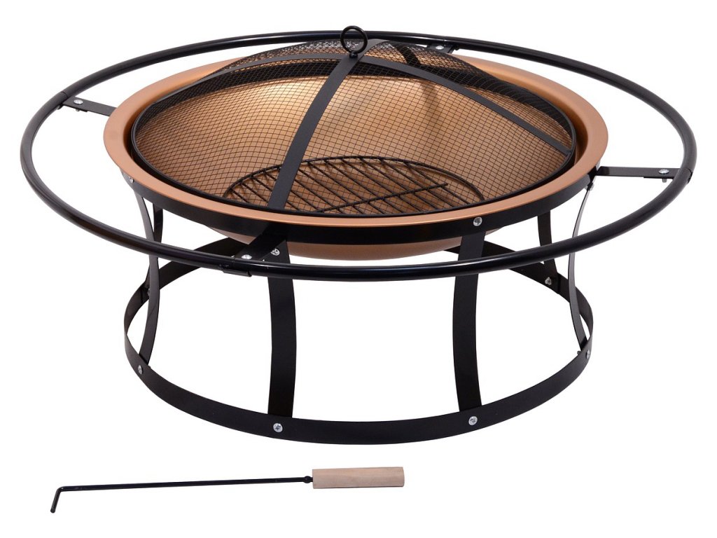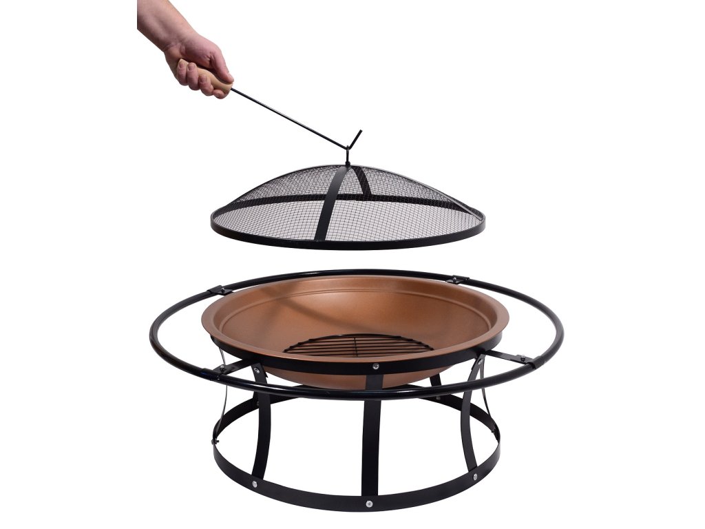 Speciálně tvarovaný poklop s pletivem poslouží jako ochrana před jiskrami, což výrazně zvyšuje bezpečnost a pohodlí. Přiložen je i kovový pohrabáč s dřevěnou rukojetí, který lze použít jak k urovnání ohně, tak i k snadnému sundání poklopu.