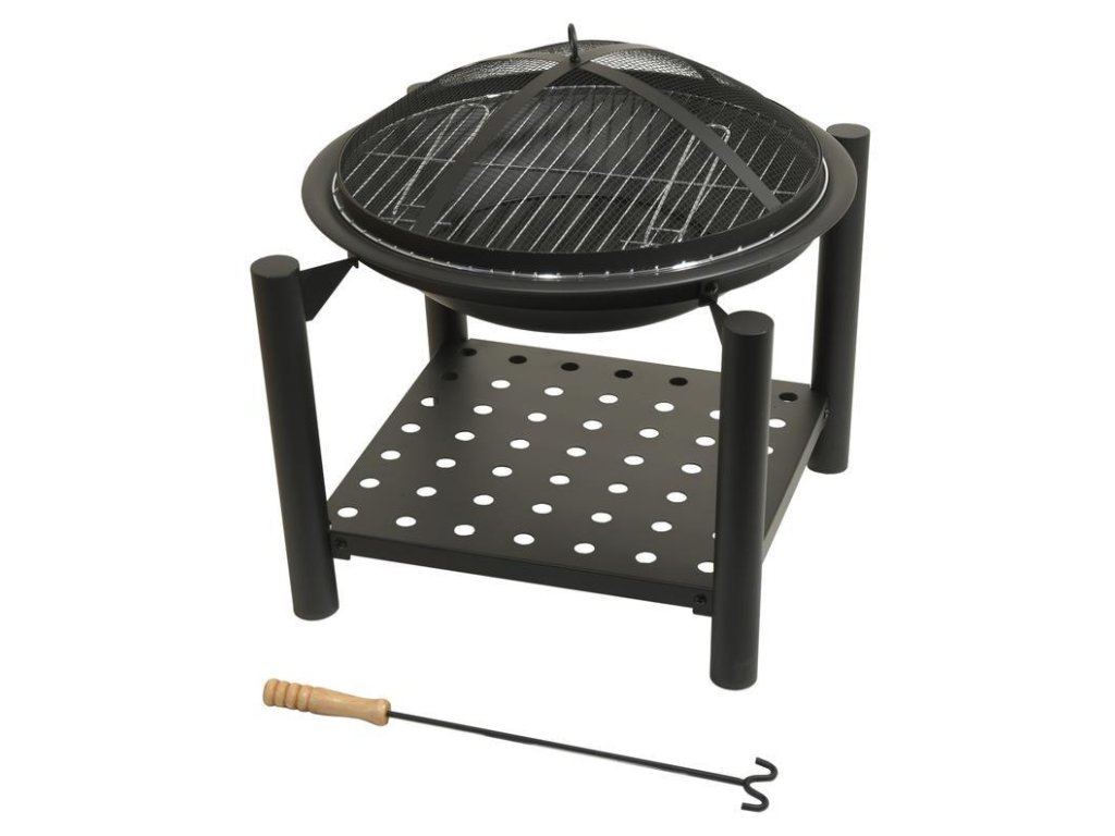Speciálně tvarovaný poklop s pletivem poslouží jako ochrana před jiskrami, což výrazně zvyšuje bezpečnost a pohodlí. Přiložen je i kovový pohrabáč s dřevěnou rukojetí, který lze použít jak k urovnání ohně, tak i k snadnému sundání poklopu.