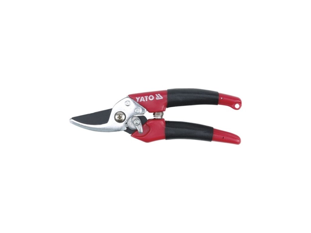 Ruční zahradní nůžky,čepel z karbonové ocely vrchní ostří potažené PTFE se šikmým střihem o celkové délce 180 mm průměru střihu do 13mm, určené ke střihu větví či jiného rostlinného materiálu s protiskluzovou rukojetí pro bezpečné držení.Značka YATO se je záruka vysoké kavilty.