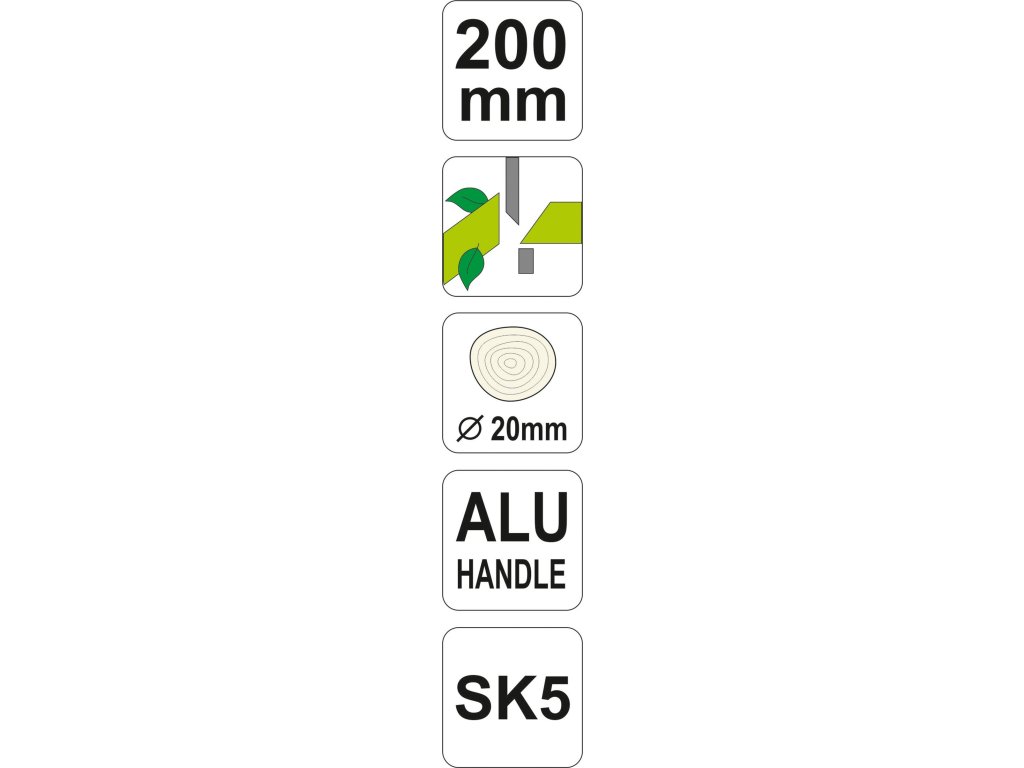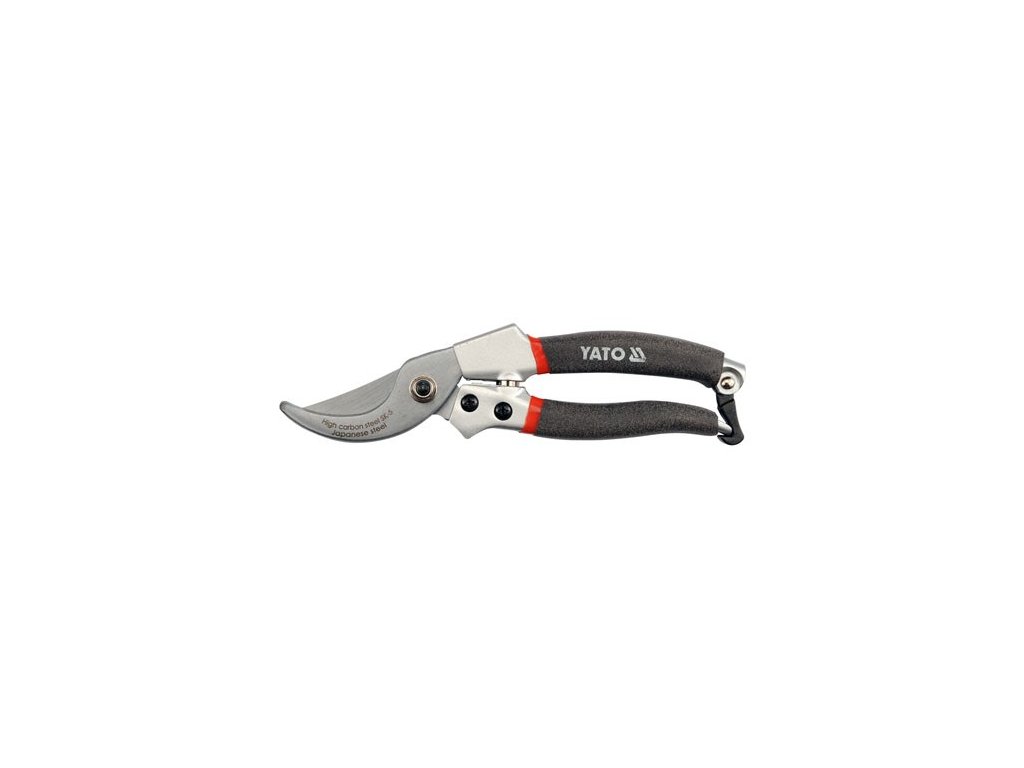 Ruční zahradní nůžky,čepel z Japonské ocely SK5 se šikmím střihem o celkové délce 200 mm průměru střihu do 20 mm, určené ke střihu větví či jiného rostlinného materiálu s protiskluzovou rukojetí pro bezpečné držení.Značka YATO se je záruka vysoké kavilty.