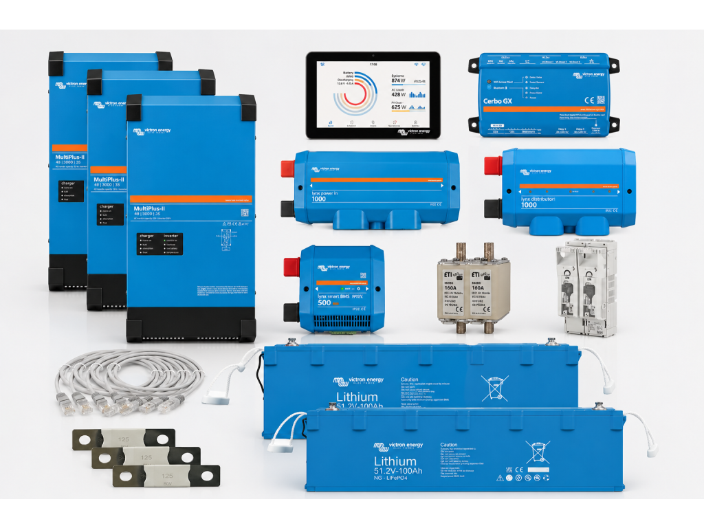 ⚡ Profesionální UPS systém Victron Energy 48 V – MultiPlus-II + LiFePO4 baterie